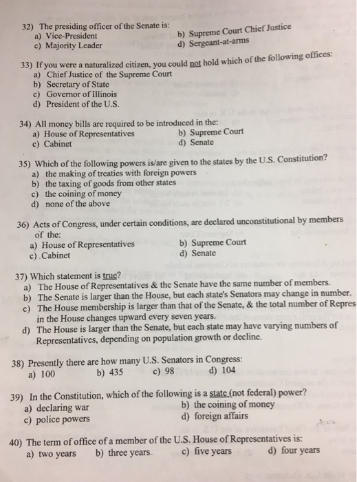 Solved The Presiding Officer Of The Senate Is A Vice Pr Chegg Com